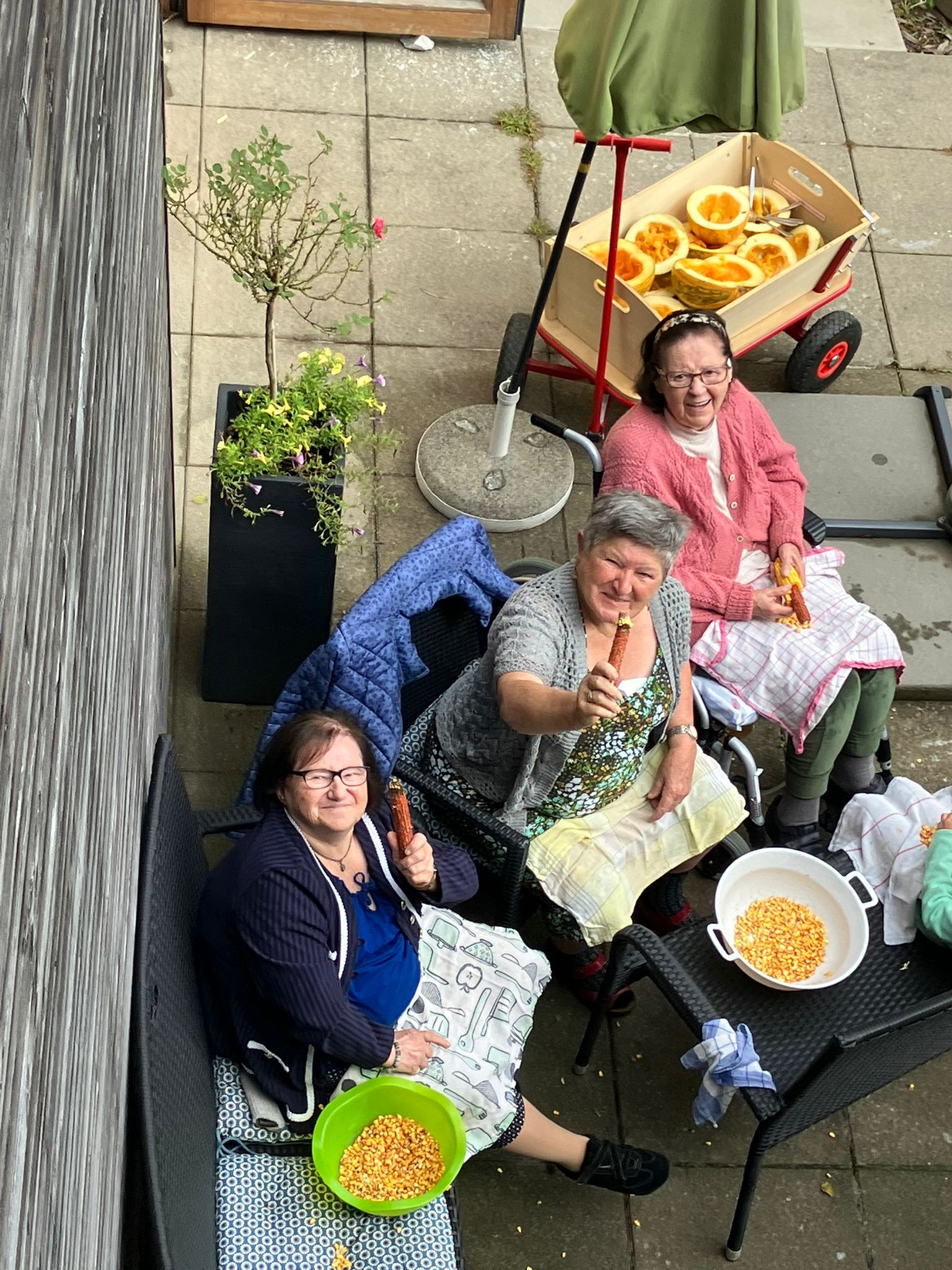 Kürzlich besuchten die Kindergartenkinder aus dem Ort das SeneCura Sozialzentrum St. Margarethen an der Raab. Die Kinder brachten leuchtend orange Kürbisse und frische Maiskolben mit, um kreative Herbst-Aktivitäten auszuüben. Gemeinsam mit den Bewohner:innen wurden die Kürbisse fleißig ausgehöhlt und die Maiskolben abgezupft. Es war eine riesen Gaudi und die Bewohner:innen freuten sich sehr über den Besuch der kleinen Freundinnen und Freunde.