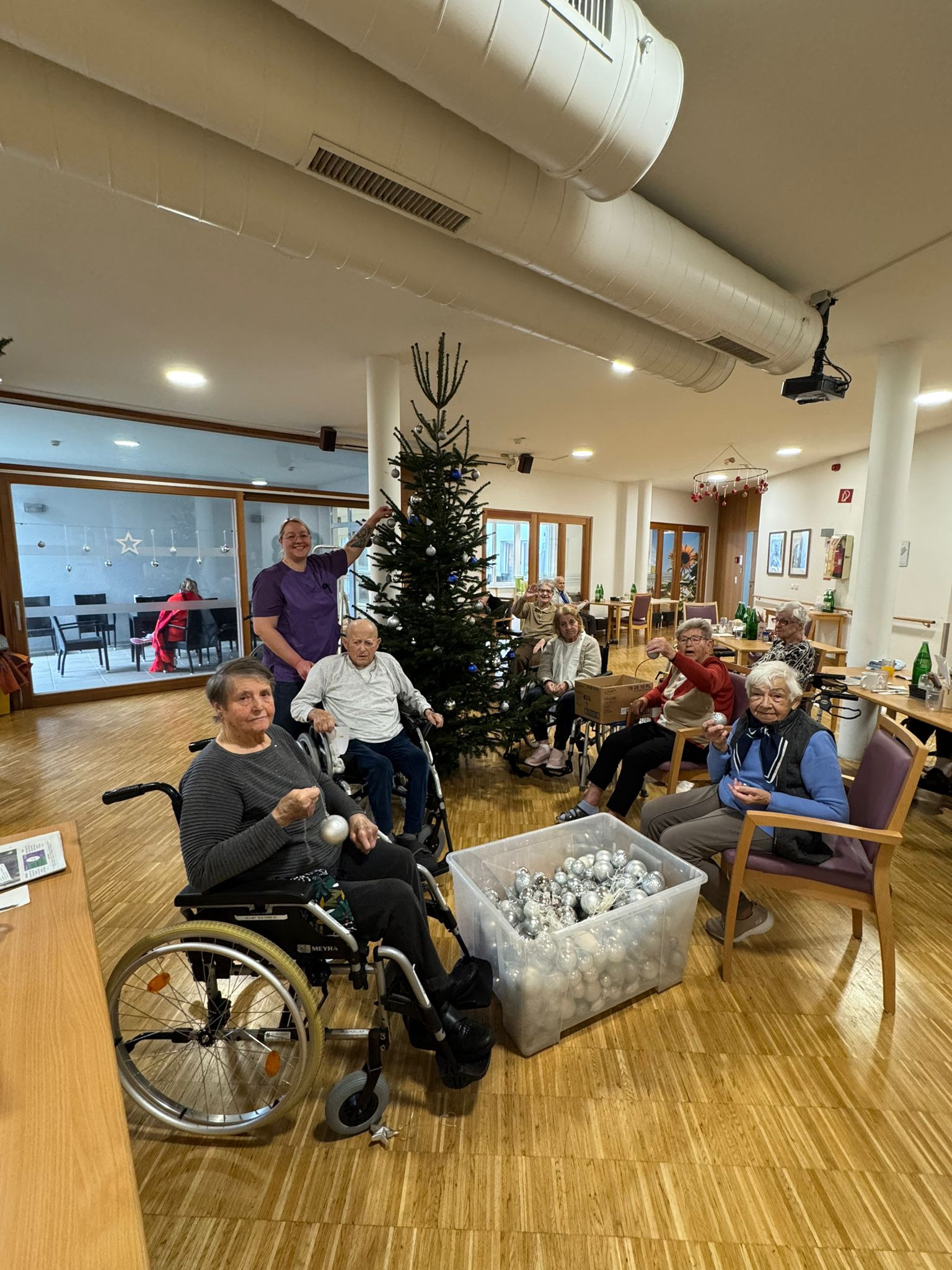 Die Adventzeit war im SeneCura Sozialzentrum St. Margarethen an der Raab von vielen abwechslungsreichen und stimmungsvollen Aktivitäten geprägt. So wurden kürzlich Vanillekipferl mit den Ehrenamtlichen gebacken. Schon bald zog ein herrlicher Duft durchs ganze Haus. Die ein oder andere Kostprobe durfte natürlich nicht fehlen. Einige Tage später fand im Haus eine Adventausstellung mit Bastelarbeiten der Bewohner:innen aus der Kreativgruppe statt, die sich großem andrang erfreute. Auch das besinnliche Adventsingen mit dem Margarethener Männerchor oder auch das fröhliche Christbaumschmücken durfte nicht fehlen.